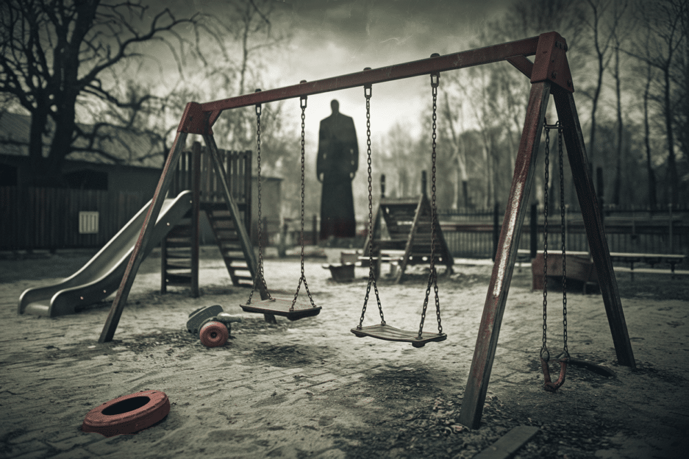 Die Fotos selbst waren auf den ersten Blick harmlos: Kinder auf Spielplätzen, verwackelte Hintergründe, dieser typische 80er/90er-„zu viel Blitz“-Look. Aber in den Schatten stand plötzlich eine unnatürlich große, dürr gestreckte Gestalt. Kein Gesicht, keine Mimik, nur dieser schwarze Anzug und Arme, die zu lang waren, um noch menschlich zu wirken. Man konnte fast hören, wie der kollektive Forums-Chat innehielt: „Was zur Hölle ist das?“ Und genau da fing die Story an zu kochen.
