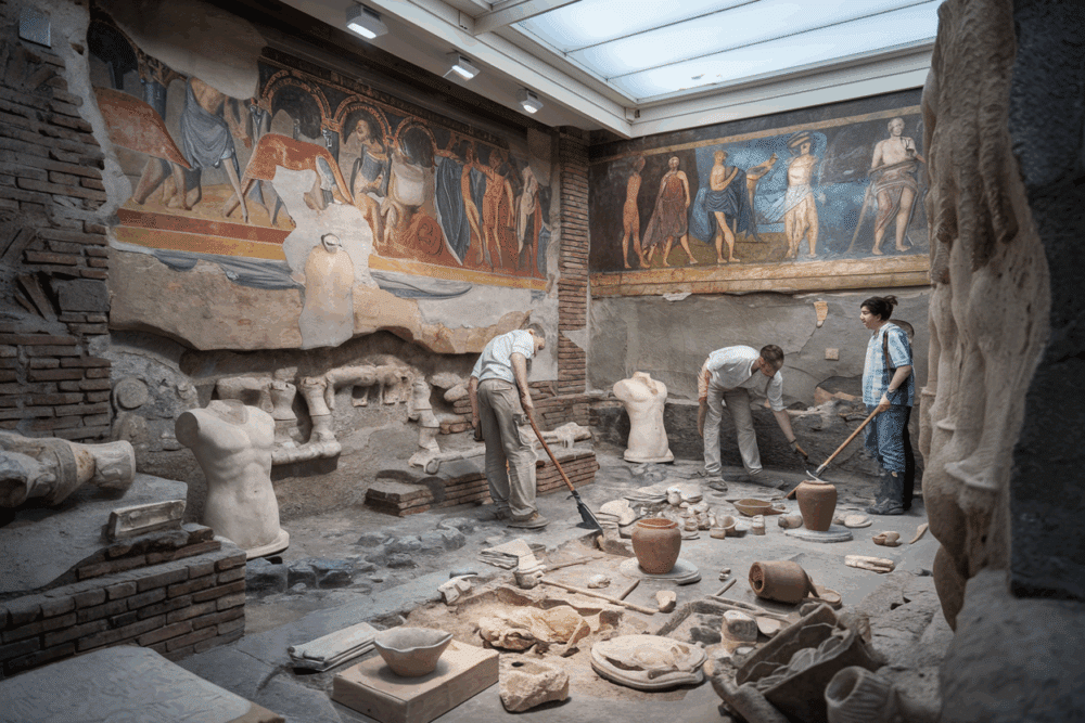 Die ersten Ausgrabungen im 18. Jahrhundert waren ehrlich gesagt… chaotisch. Eher Schatzsuche als Archäologie. Im Jahr 1748 begannen die Bourbonen-Herrscher mit den Grabungen, aber weniger aus wissenschaftlicher Neugier, sondern weil man hoffte, Gold, Statuen oder Schmuck zu finden. Viele Dinge wurden ohne Dokumentation ausgegraben. Ein Albtraum für heutige Forscher. Trotzdem war der Hype sofort gigantisch. Europa drehte durch vor Begeisterung, weil man plötzlich eine ganze römische Stadt aus dem Boden holte. Es war das erste Mal in der Geschichte, dass Menschen das Alltagsleben der Antike in „Originalzustand“ sahen. Das war ein absoluter Gamechanger.